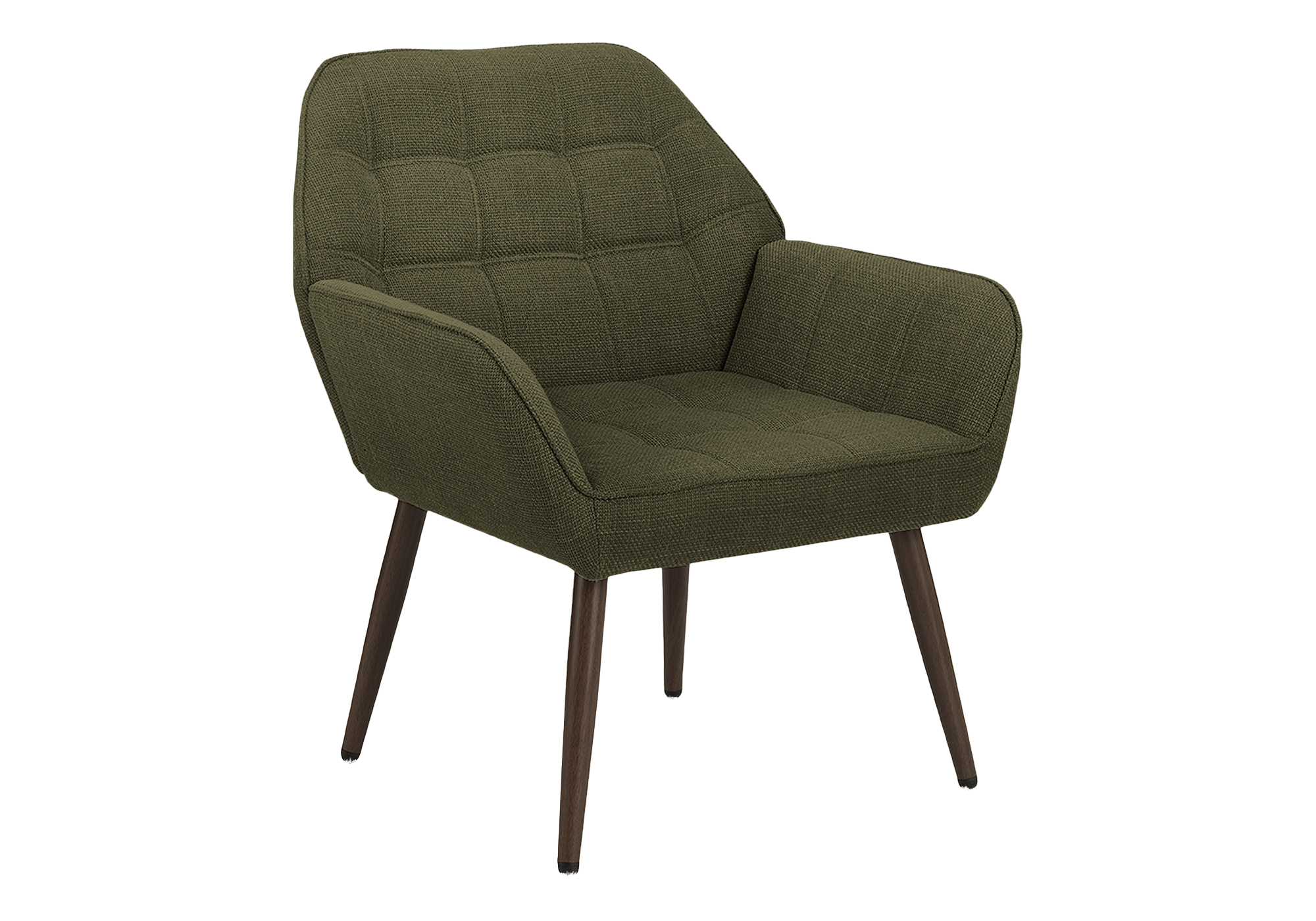 Enhance your living room with this beautifully designed accent chair, offering a refined balance of contemporary elegance and everyday comfort. Standing 29″ high, this armchair showcases a fashionable style that makes it a standout choice for modern interiors. Upholstered in soft, dark green fabric, it brings comfortable warmth and sophistication to your space while blending effortlessly with contemporary décor. Plush foam cushioning and soft touch fabric create an inviting seating experience, making it the perfect place to relax at the end of the day or enjoy quiet moments at home. Durable construction ensures lasting quality, with a solid engineered wood frame paired with sleek walnut metal legs for reliable support and a clean, modern aesthetic. Thoughtfully designed for convenience, the chair is easy to assemble so you can enjoy its comfort and style without delay. Backed by a 2-year limited warranty, this accent chair offers confidence in craftsmanship and long-term enjoyment. Whether styled as a statement piece or a cozy seating option, it delivers timeless appeal, sturdy construction, and a fashionable style that completes your living space.