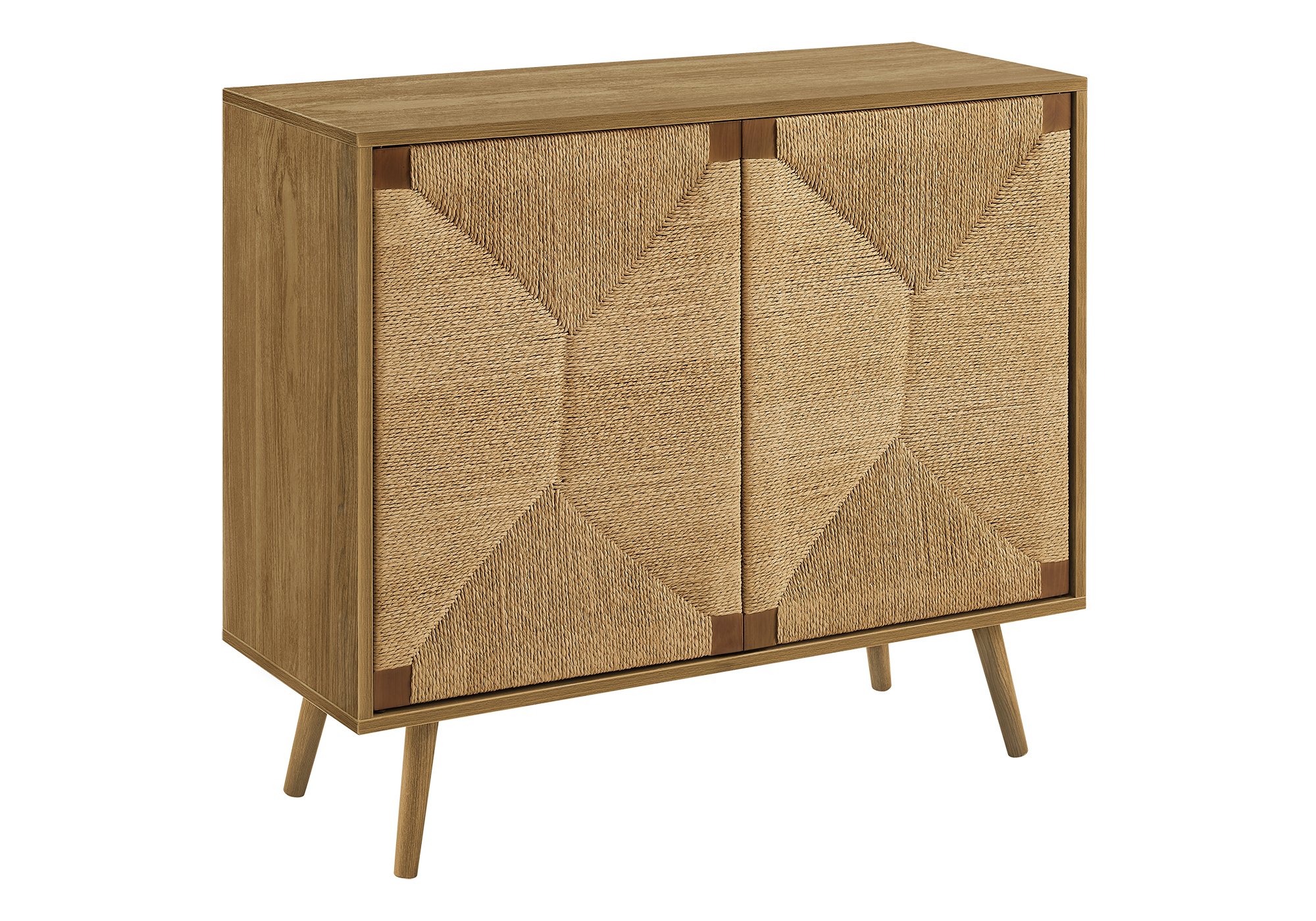 ACCENT CHEST – 32″H / LIGHT WALNUT / SEAGRASS-LOOK / 2 DOORS