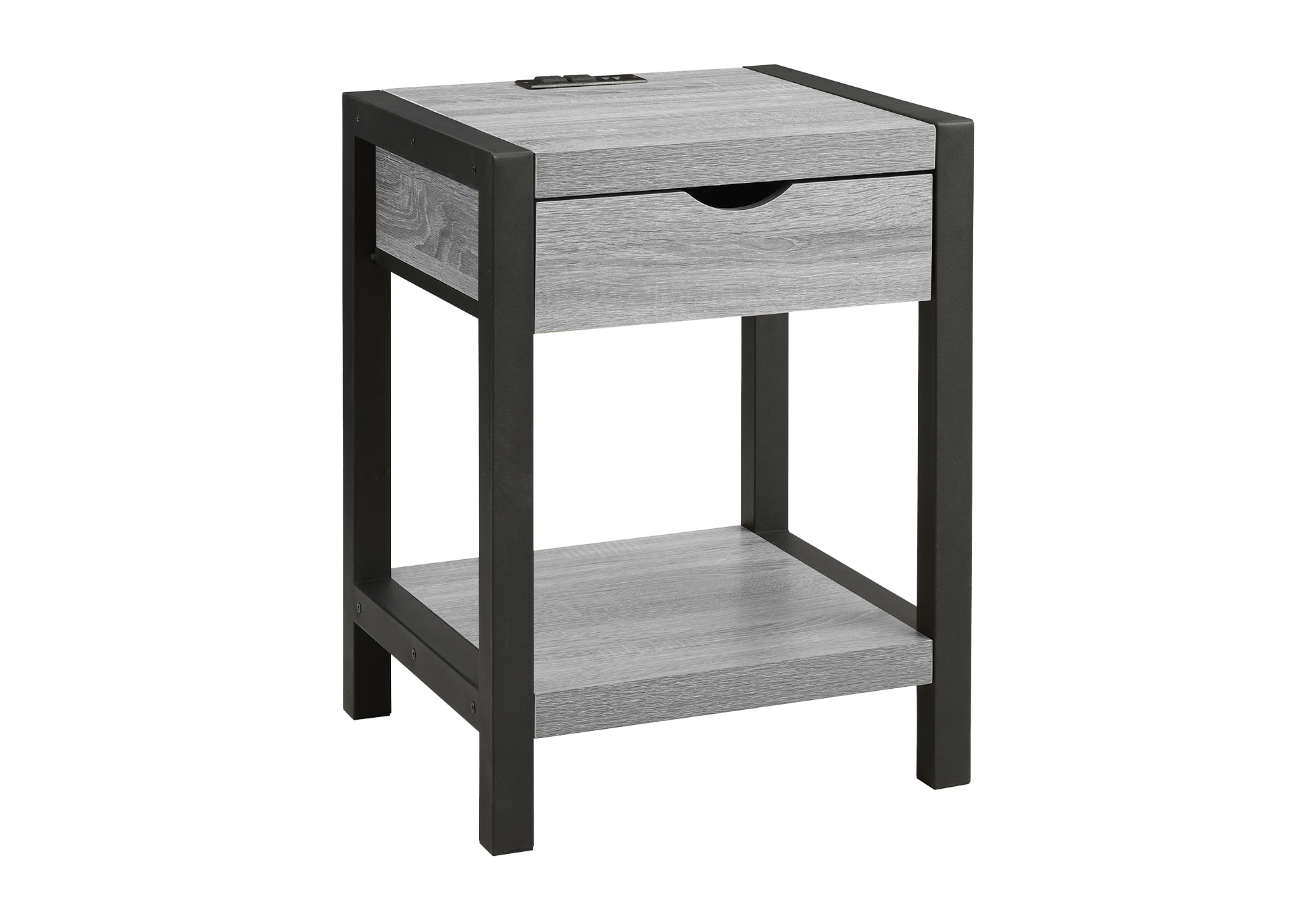 ACCENT TABLE – 24″H / GREY / BLACK METAL USB / PLUG
