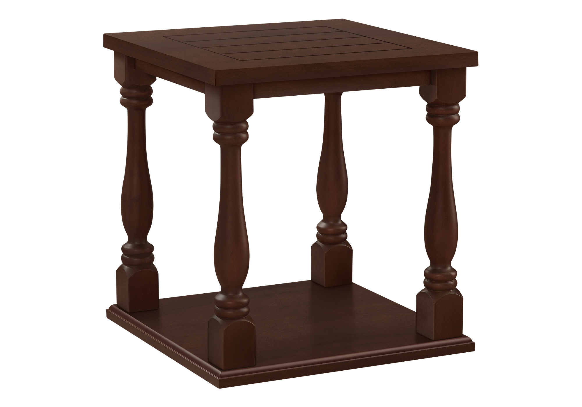 Introducing the perfect addition to any living room or bedroom, or any other space in need of stylish storage and display! This 25 inch high espresso brown veneer end table is durably designed with a classic, fashionable style for traditional decors. With a practical and space saving design, this square side table has 2 tier shelving accented with turned post legs, provides plenty of storage whether you place a lamp over the thick, tabletop accented with grooved lines or some neatly stacked books on the beveled bottom shelf. Get a pair to setup as elegant end tables next to a sofa, or as a charming side table near your favorite chair. Versatile and functional enough to bring into the bedroom as a classy nightstand. Durably constructed with quality wood materials, this accent table comes with a 5 year limited warranty against manufacturer’s defects ensuring you are purchasing a long-lasting furniture item. Easy to assemble with full illustrated instructions and hardware included, this multi-functional table will help to fill in that vacant spot in a space.