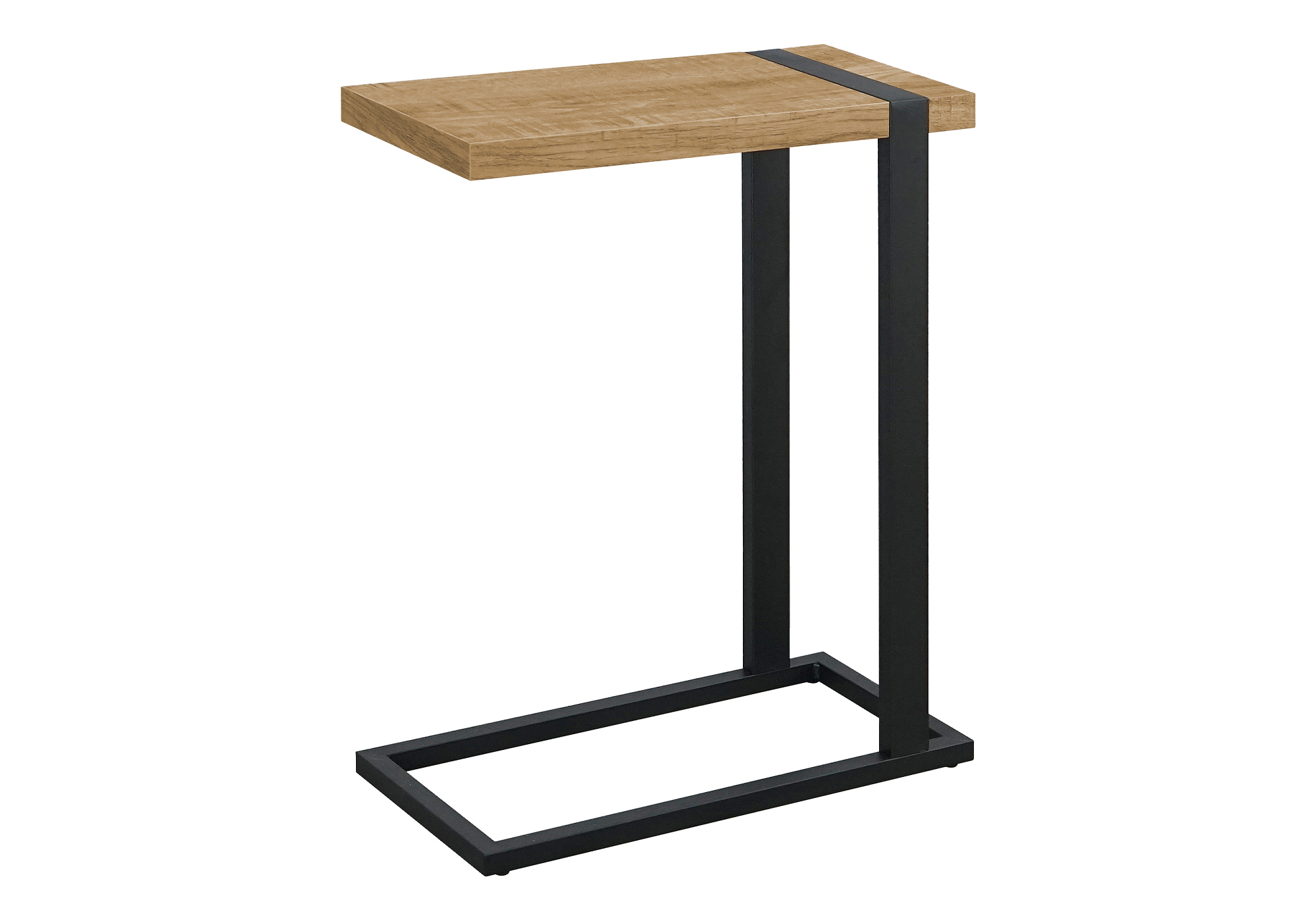 Add practical style to your space with this 25″h C-shaped accent table designed for modern living. Featuring a fashionable mango wood-look laminate top supported by sturdy black metal legs, this piece offers a clean, contemporary look that fits seamlessly into both living room and bedroom settings. The smart space saving design allows the table to slide easily beside a sofa or bed, making it an ideal end table, side table, or convenient snack table when you need a surface close at hand. Durably designed with an easy to clean top and simple assembly, this practical accent table delivers everyday function without taking up unnecessary space. Backed by a 5 year limited warranty, it’s a stylish and reliable addition to any home.