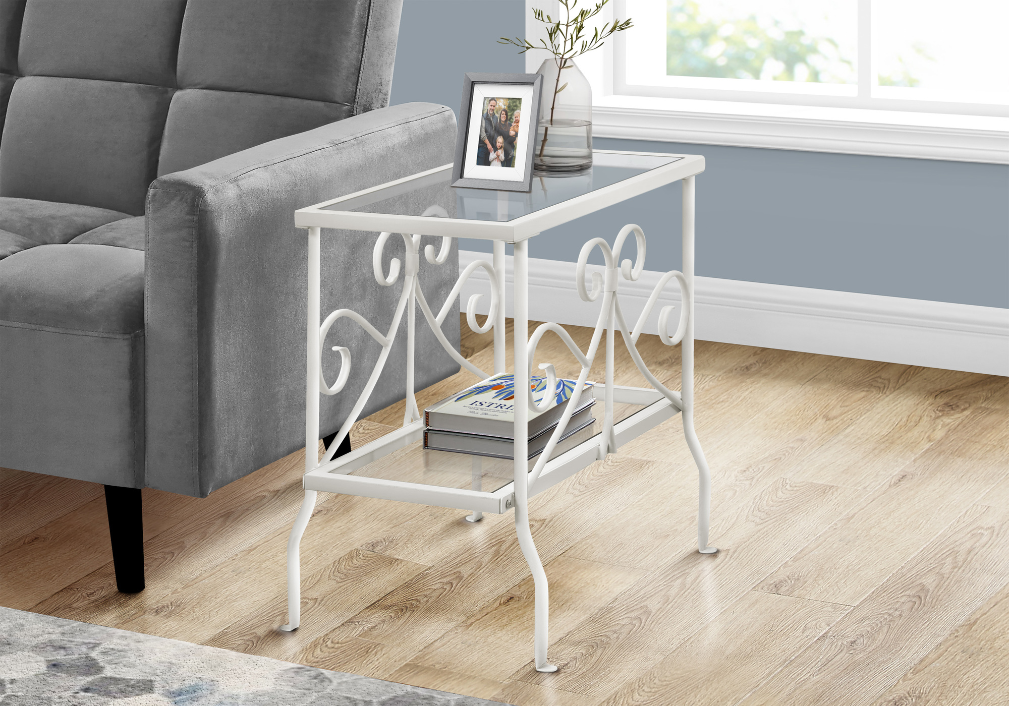 ACCENT TABLE – WHITE METAL WITH TEMPERED GLASS