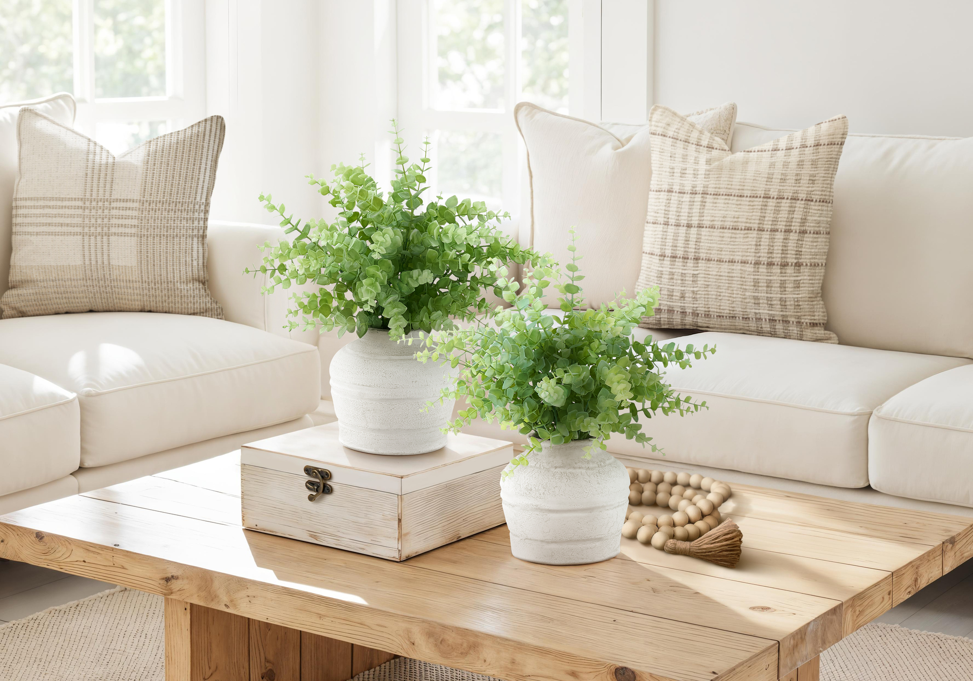 Introduce effortless greenery into your décor with this set of 2 artificial eucalyptus grass plants, designed to add height, texture, and a modern botanical touch. Standing 16″ tall, each artificial plant is perfectly suited for a table, console, or shelf, creating visual interest without overwhelming your space. Set in clean white pots, these artificial eucalyptus plants bring a fresh, contemporary feel that works seamlessly as an accent for the home or office. Crafted from high-quality materials, they feature a carefully detailed realistic look, offering the beauty of natural greenery with no maintenance no watering, sunlight, or upkeep required. Made with environmentally friendly materials and backed by a 5-year limited warranty, this artificial plant set delivers long-lasting style, durability, and peace of mind. It’s a simple, elegant solution for adding greenery to modern interiors without the commitment of live plants.