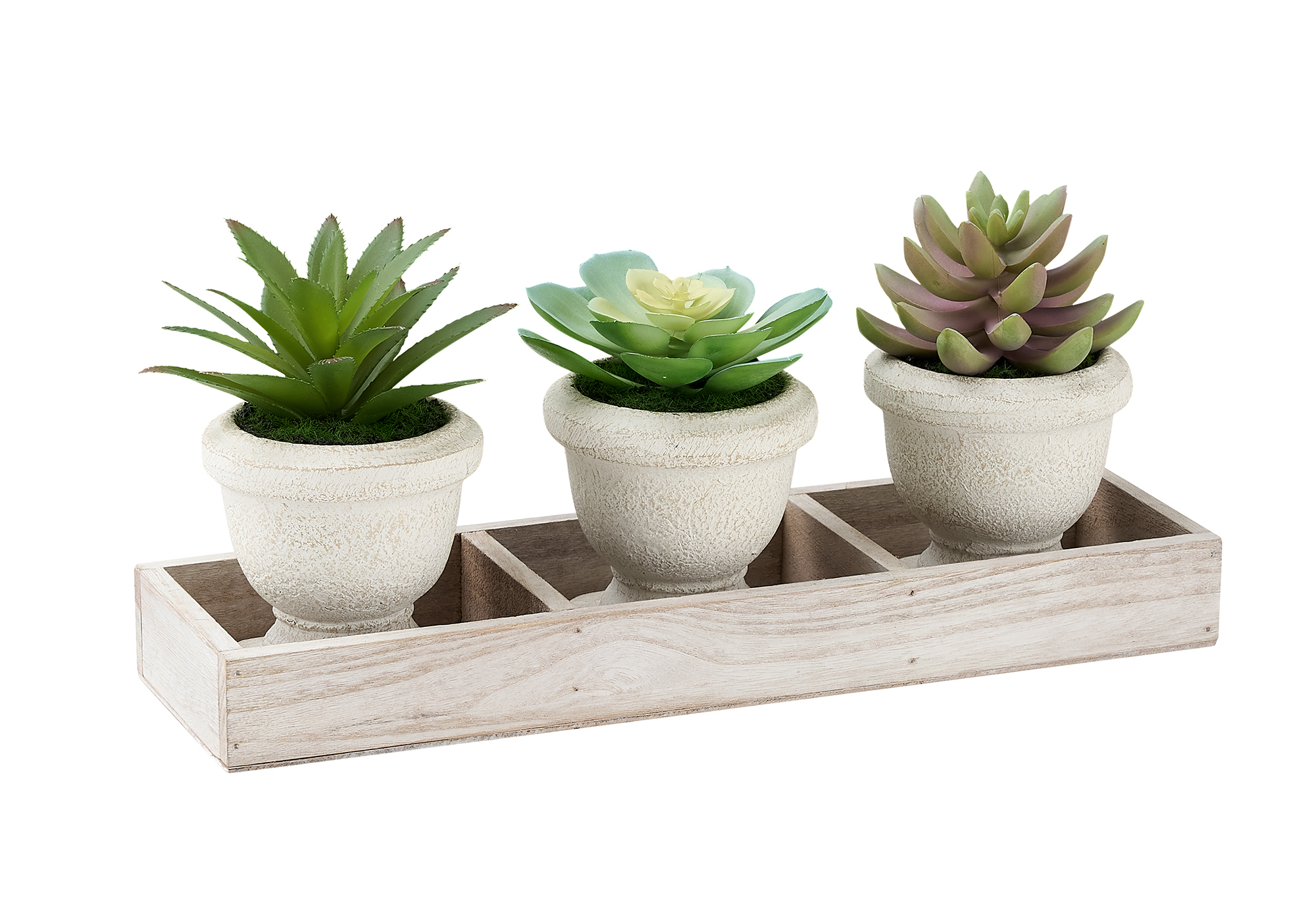 ARTIFICIAL PLANT – 3PCS / 6″H SUCCULENT BEIGE POT/ WOOD TRAY