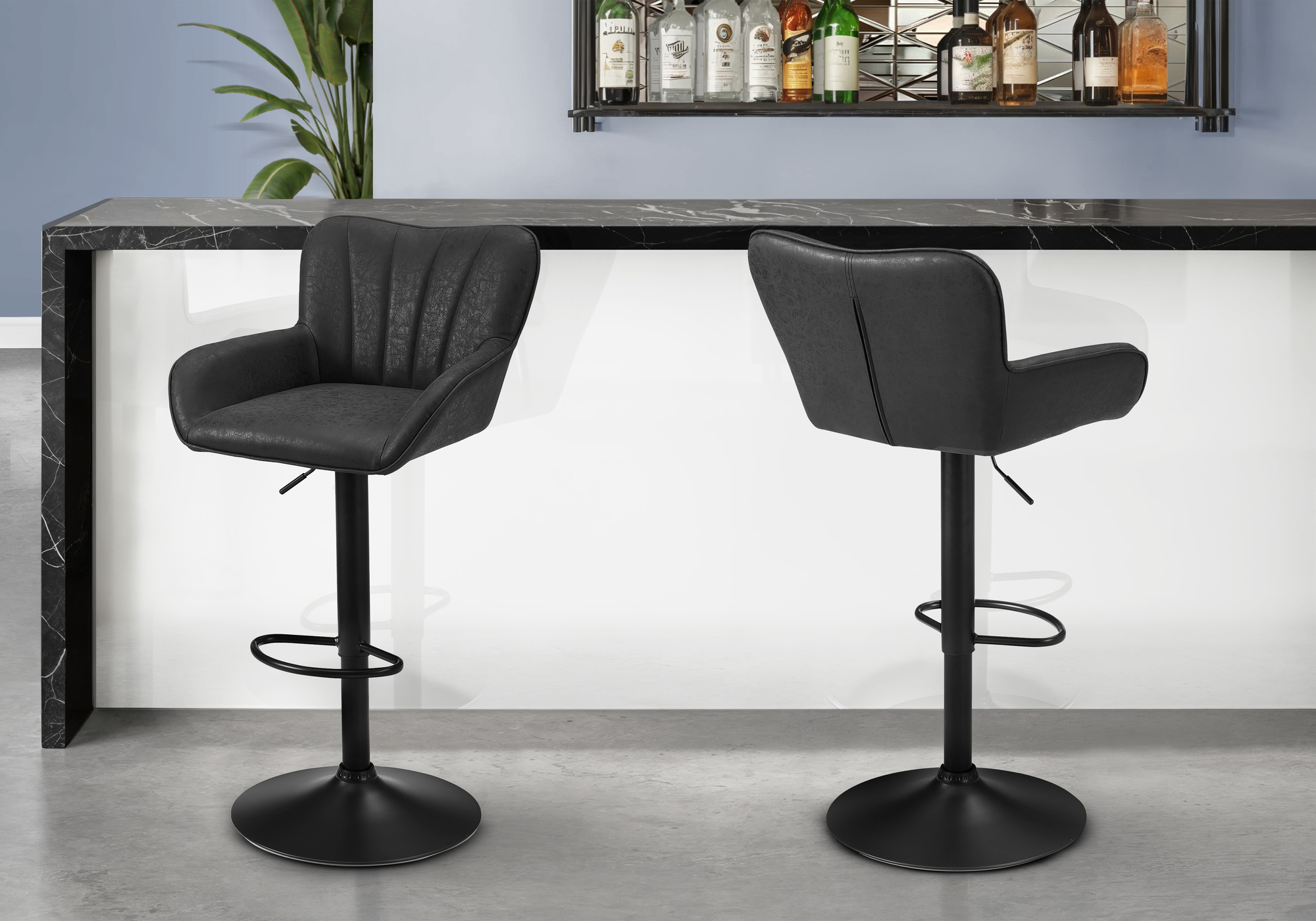 BARSTOOL – 2PCS / BLACK PU / BLACK METAL ADJUSTABLE HEIGHT