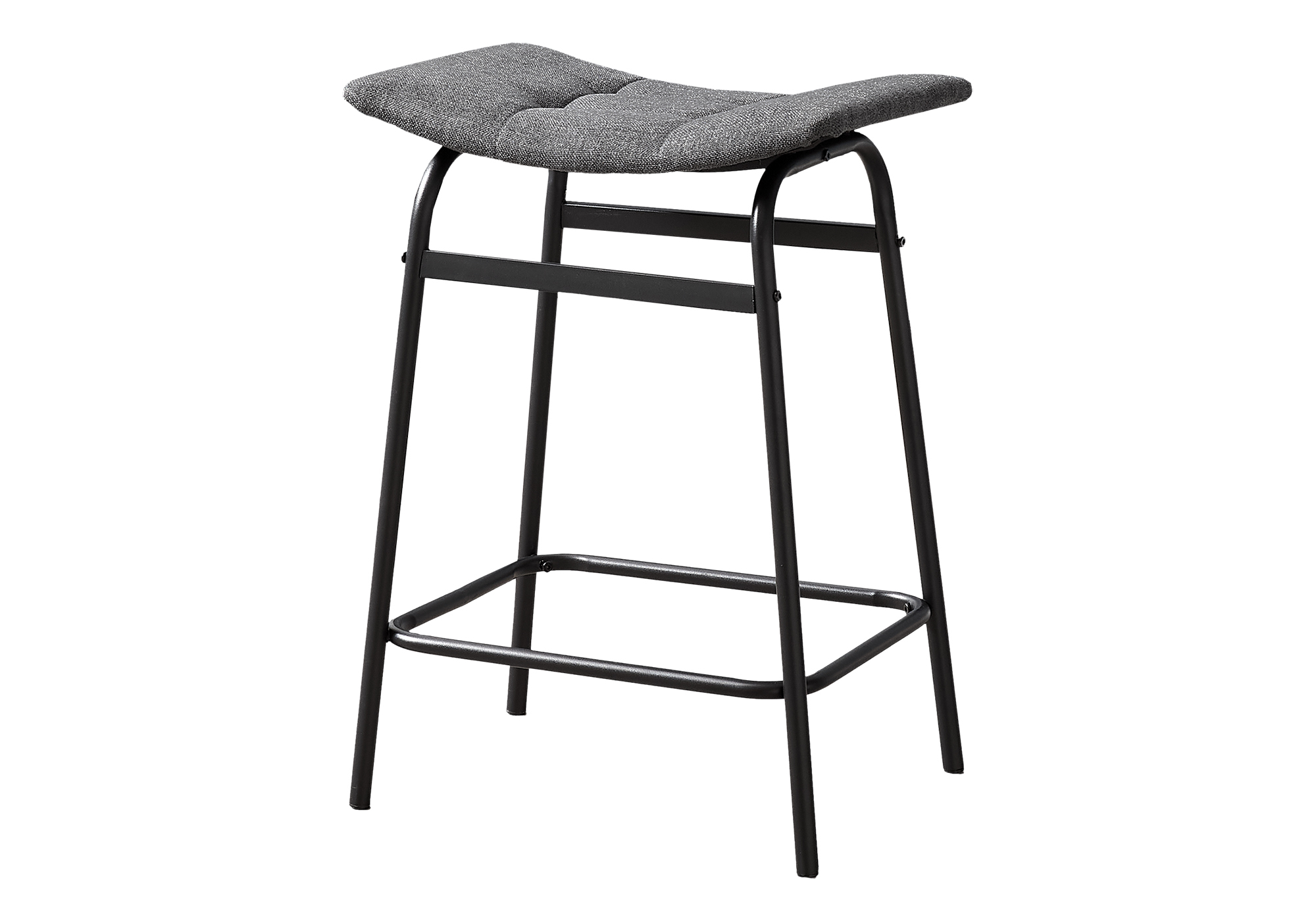Give your kitchen or entertainment area an upgrade with this set of 2 fashionable and contemporary counter height barstools. The sleek grey fabric upholstery paired with sturdy black metal legs creates a contemporary and trendy style that is sure to impress. The backless design and padded saddle seats ensure maximum comfort while you relax and unwind. These barstools are easy to assemble with illustrated instructions included and come with a 2 year limited warranty for peace of mind. With a convenient footrest and sturdy construction, these counter height barstools are the perfect addition to any chic space. Pair these with a counter height table (sold separately) and re-fresh your decor with these fashionable style and comfortable barstools!