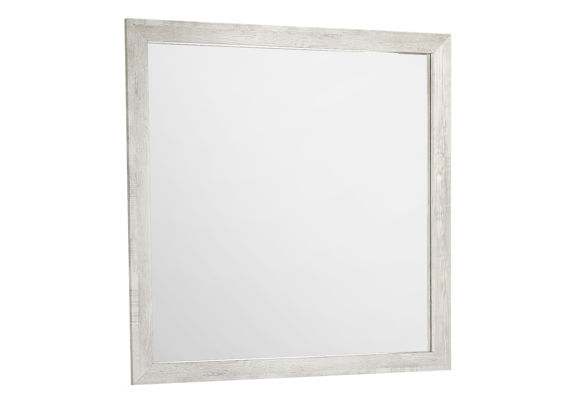 Visually expand your sleeping sanctuary with this contemporary framed wall mirror that not only enhances your decor but also serves as a practical add-on to your bedroom set. Designed in a chic grey reclaimed finish, this mirror can be hung directly on the wall or attached behind the matching dresser (sold separately) with the mirror assembly slats included for an easy transformation. Plus, with our convenient 2 year limited warranty against manufacturer defects, you can rest assured that you are investing in a quality made product. Refresh your space with the other matching pieces (each sold separately) to create a timeless bedroom set that is the perfect blend of modern rustic charm.