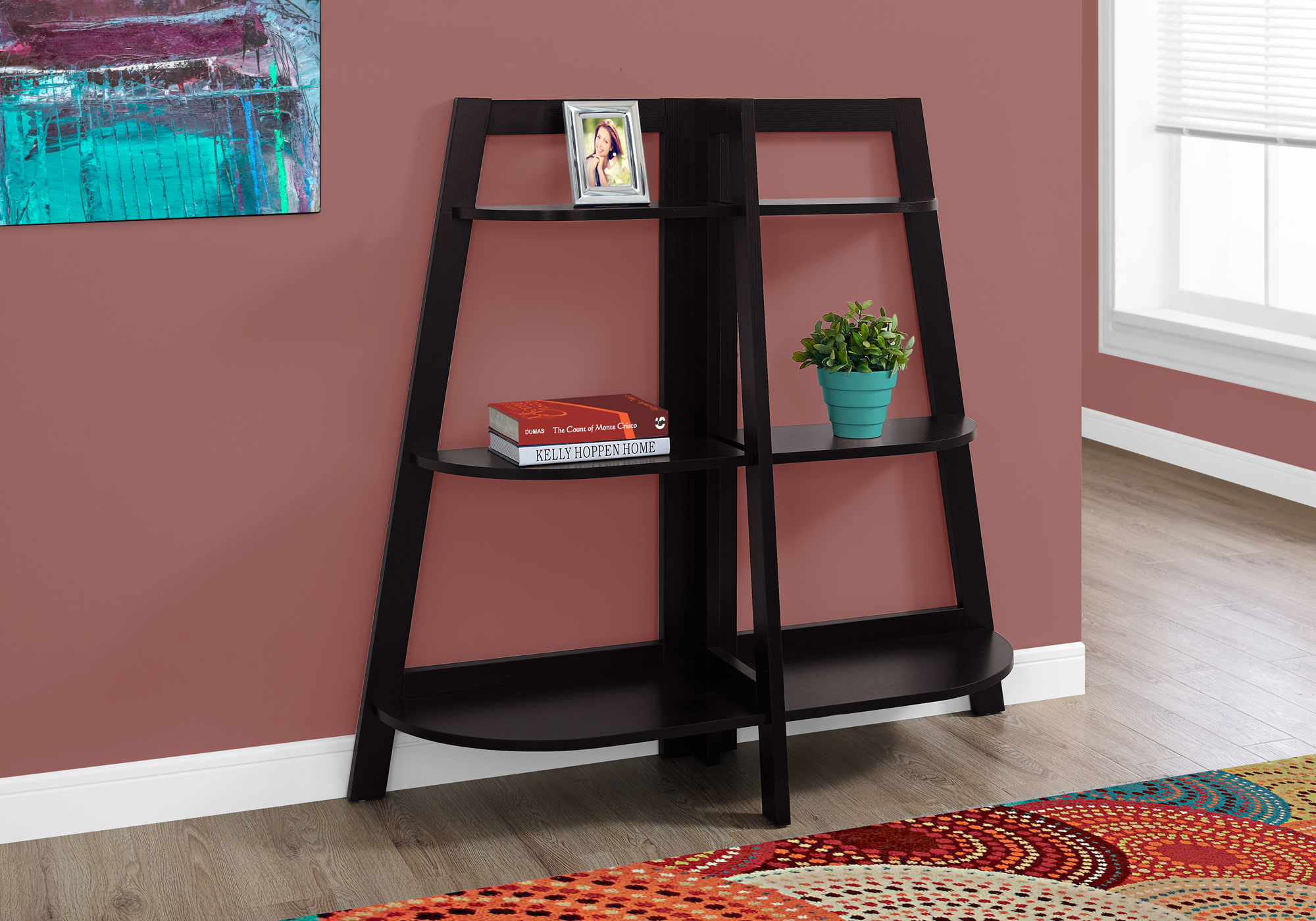 Signature design is on display with this chic and contemporary etagere bookcase. Constructed with 6 open shelves, we’d like to introduce you to your new favorite accent furniture piece in your living room, office, entrance or wherever you’d like to set it up! The modern walnut, wood look finish is on point with today’s trends. The middle open block style leg keeps it sturdy, whether you want to use the unit for books, accessories or even electronics. It’s an attention-grabber you’re sure to love in your apartment or condo.