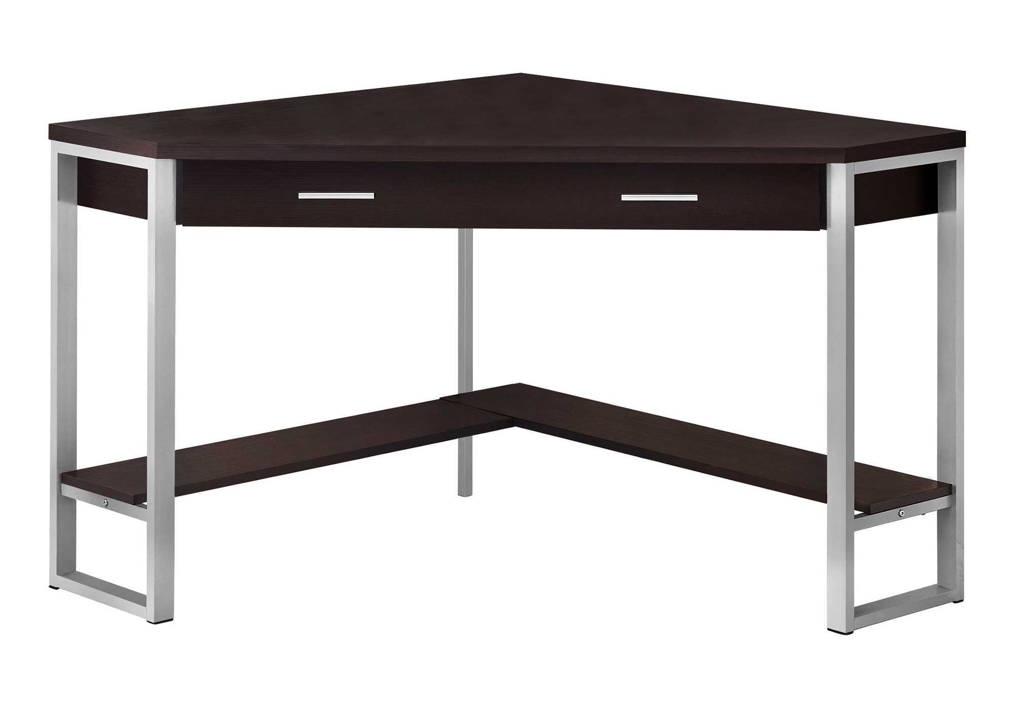 COMPUTER DESK – 42″L / ESPRESSO CORNER / SILVER METAL