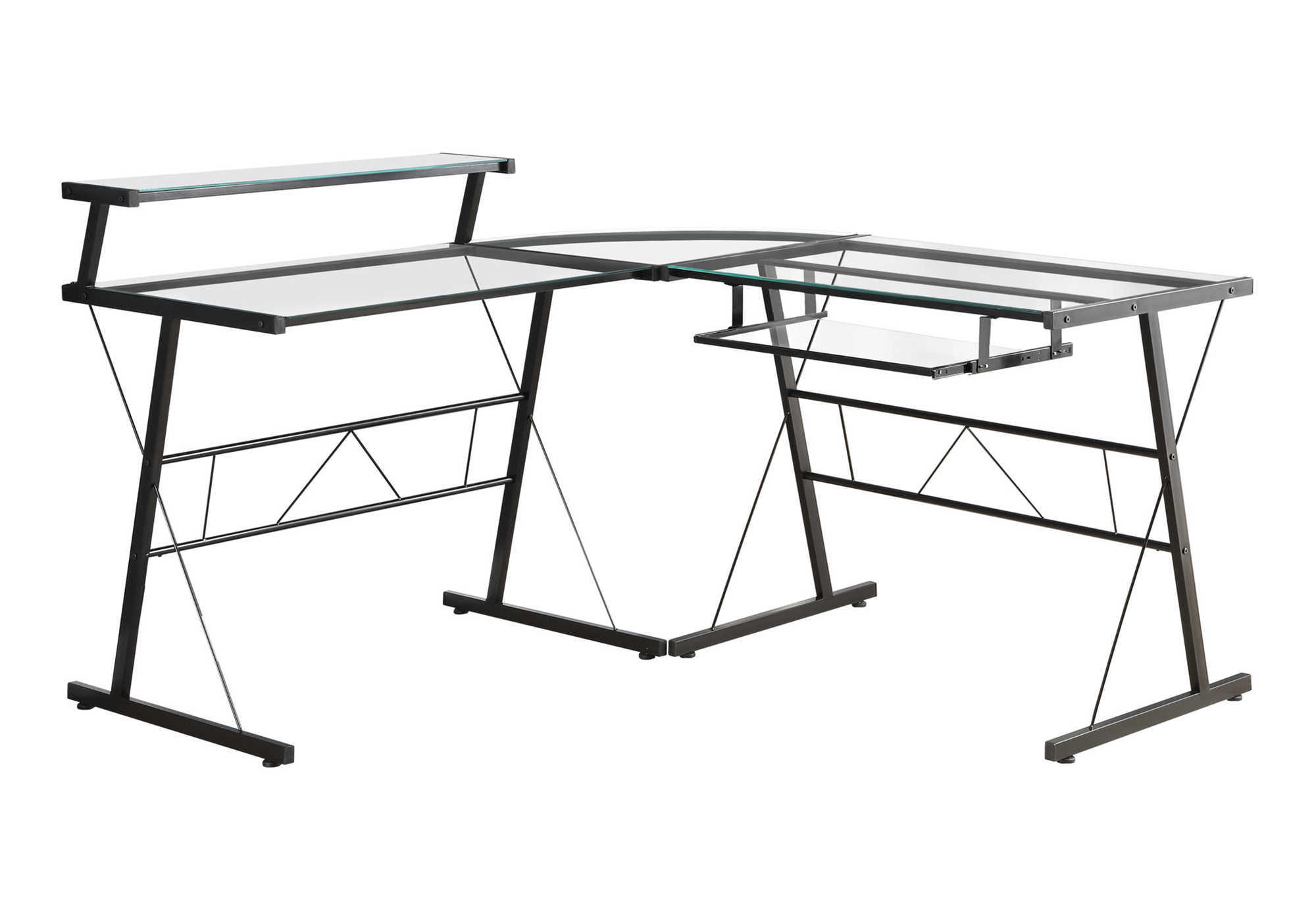 COMPUTER DESK – BLACK METAL CORNER WITH TEMPERED GLASS
