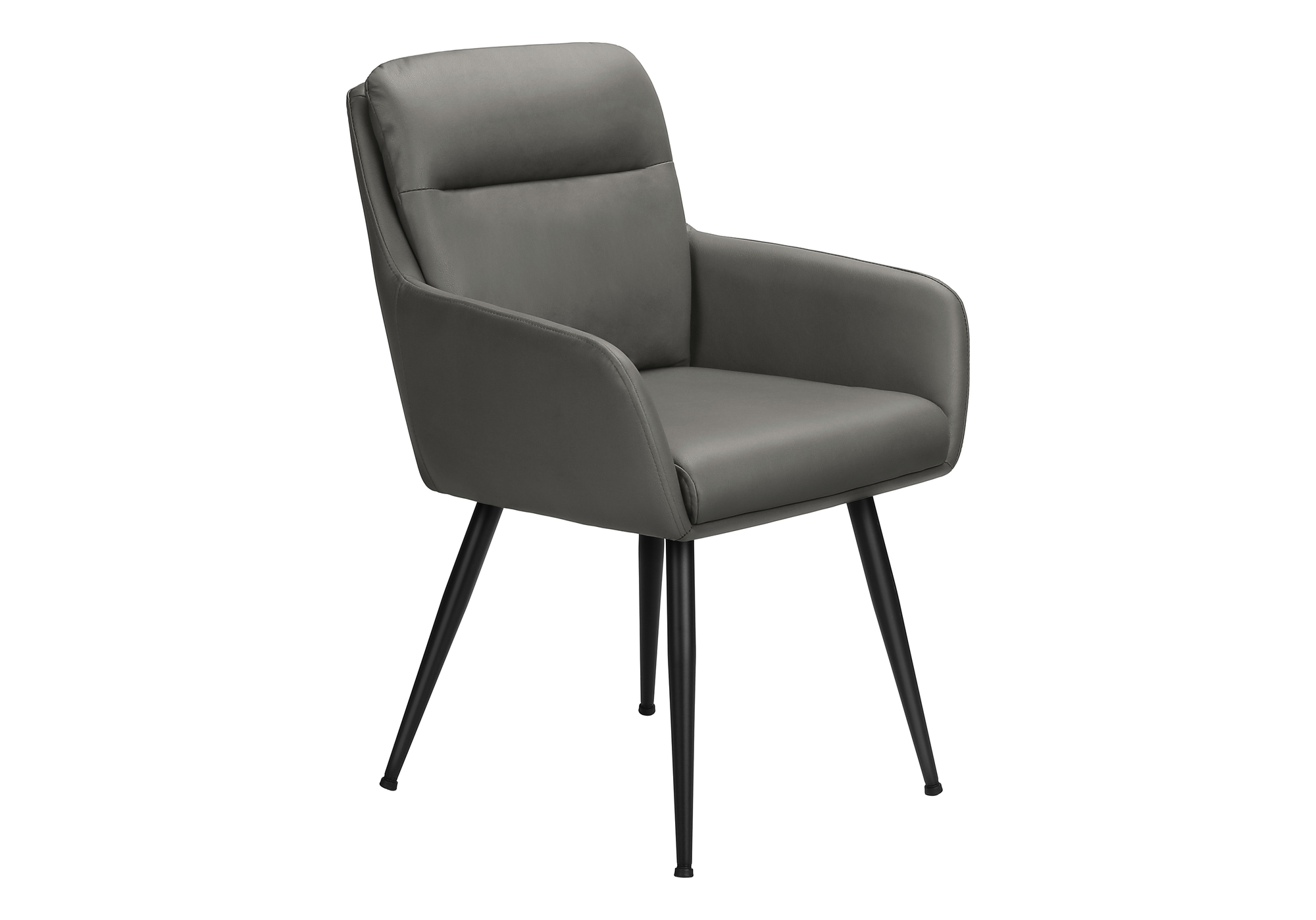 Bring a clean, modern look to your dining space with this set of two contemporary dining chairs. Designed to enhance both kitchens and dining rooms, these chairs offer a streamlined silhouette that feels perfectly suited for casual family dining as well as more polished entertaining spaces. Upholstered in a smooth grey leather-look finish with generously padded foam cushioning, the chairs deliver a fashionable style while remaining both comfortable and durable for daily use. The slim profile and tailored design create a balanced presence at the table, adding style without overwhelming your space. Thoughtful details and quality construction ensure dependable comfort and support, while the black metal legs lend a refined, modern edge. Easy to assemble and backed by a 2-year limited warranty, these chairs offer lasting value and allow you to enjoy your updated dining area quickly and with minimal effort.