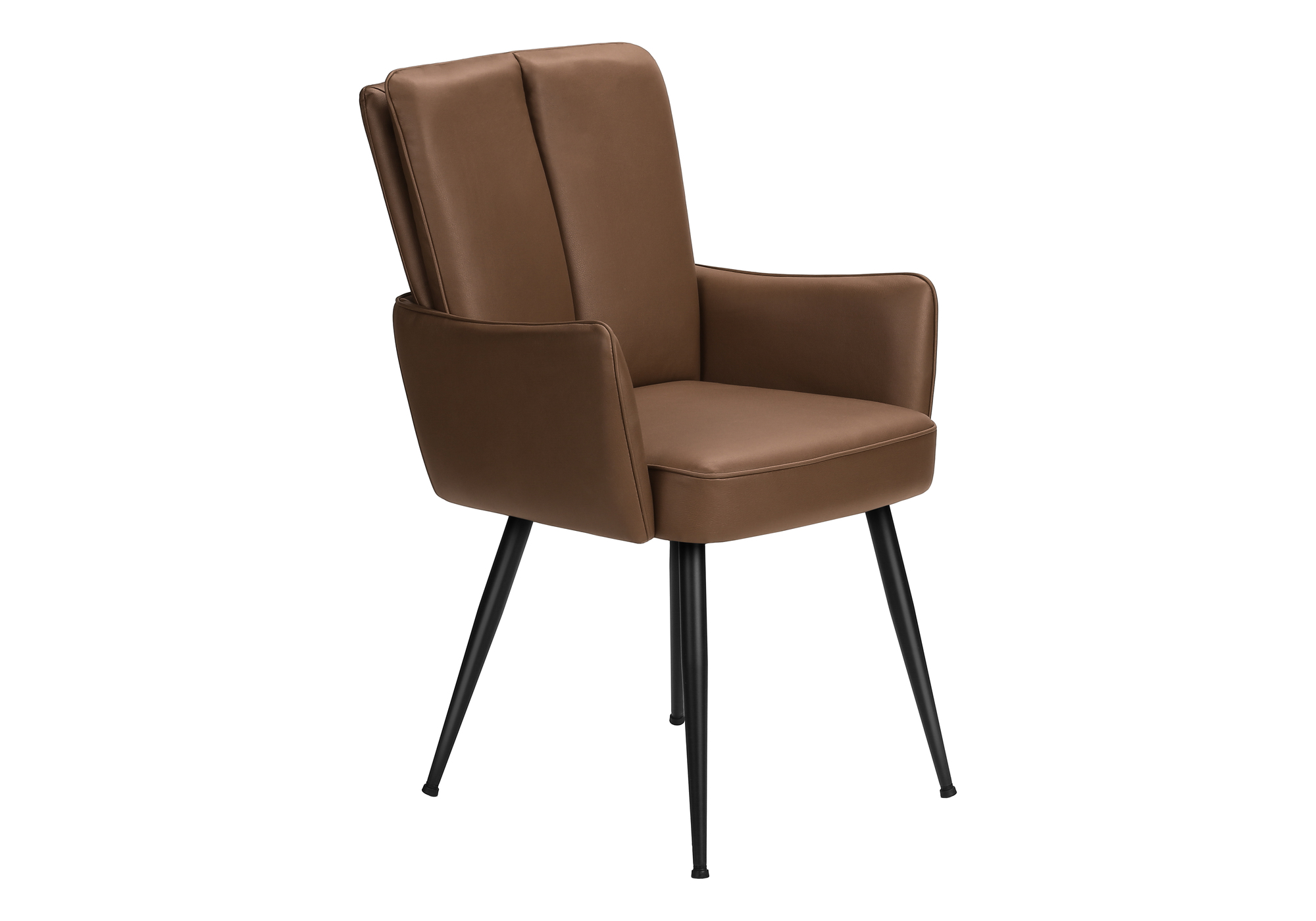 Introducing the ultimate blend of comfort and contemporary design with this set of 2 dining chairs, meticulously crafted to enhance your casual family dining or when entertaining. Standing tall at 36 inches, these stunning chairs boast a fashionable style that complements both modern kitchens and dining rooms. Dressed in a sophisticated light brown leather-look upholstery, these chairs are not only stylish but also incredibly durable with sturdy construction. The sleek black metal legs provide a solid foundation that is as robust as it is fashionable. The plush foam cushioning along the back and sides, with thick padded seats ensure that every meal becomes an enjoyable experience. Designed with an easy to assemble mindset that includes illustrated instructions and all hardware to setup and use in no time. Rest easy with our 2 year limited warranty against manufacturer defects for peace of mind as you enjoy the comfort and quality of these gorgeous dining chairs.