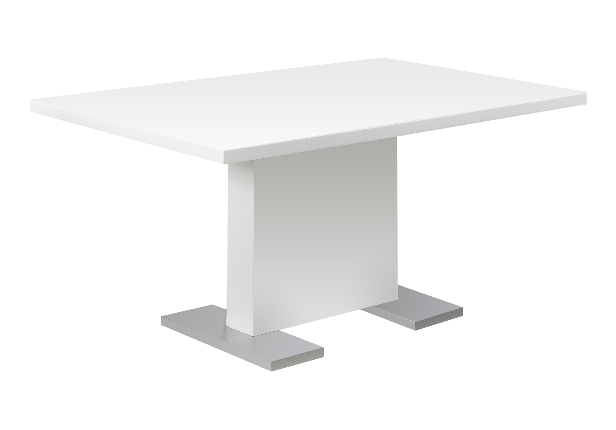 Create a trendy contemporary look with this glossy white dining table. This table features sleek chrome-look feet and a generous surface that will accommodate intimate or larger gatherings comfortably seating up to 6. Mix and match with your favorite chair to create a unique and stylish dining experience in a casual or formal setting.