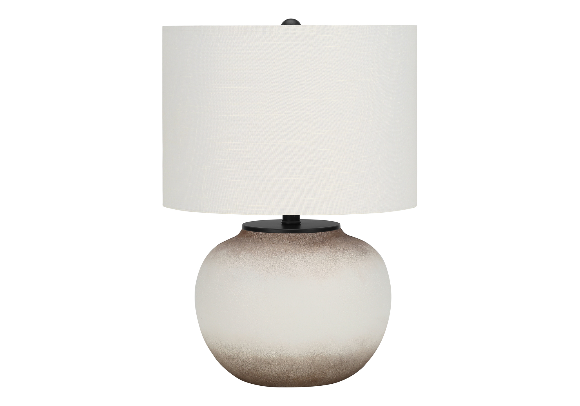This stylish and modern 21″h globe shaped table lamp with a cream ceramic base that shows subtle brown shading for contrast, topped with an ivory fabric drum shade, and finished with a black finial is the perfect accent to brighten any room. Featuring a 3-way switch holding a single bulb (not included) with a maximum outage of 100W/120V, allows you to customize the ambiance in your living room, home office, or bedroom. With a fresh, contemporary appeal, place this versatile decorative lamp on a side or end table, or on your nightstand to create a warm and inviting atmosphere. Made with durable quality materials ensuring longevity, this lamp includes a 2 year limited warranty against any manufacturer’s defects for a worry-free purchase.