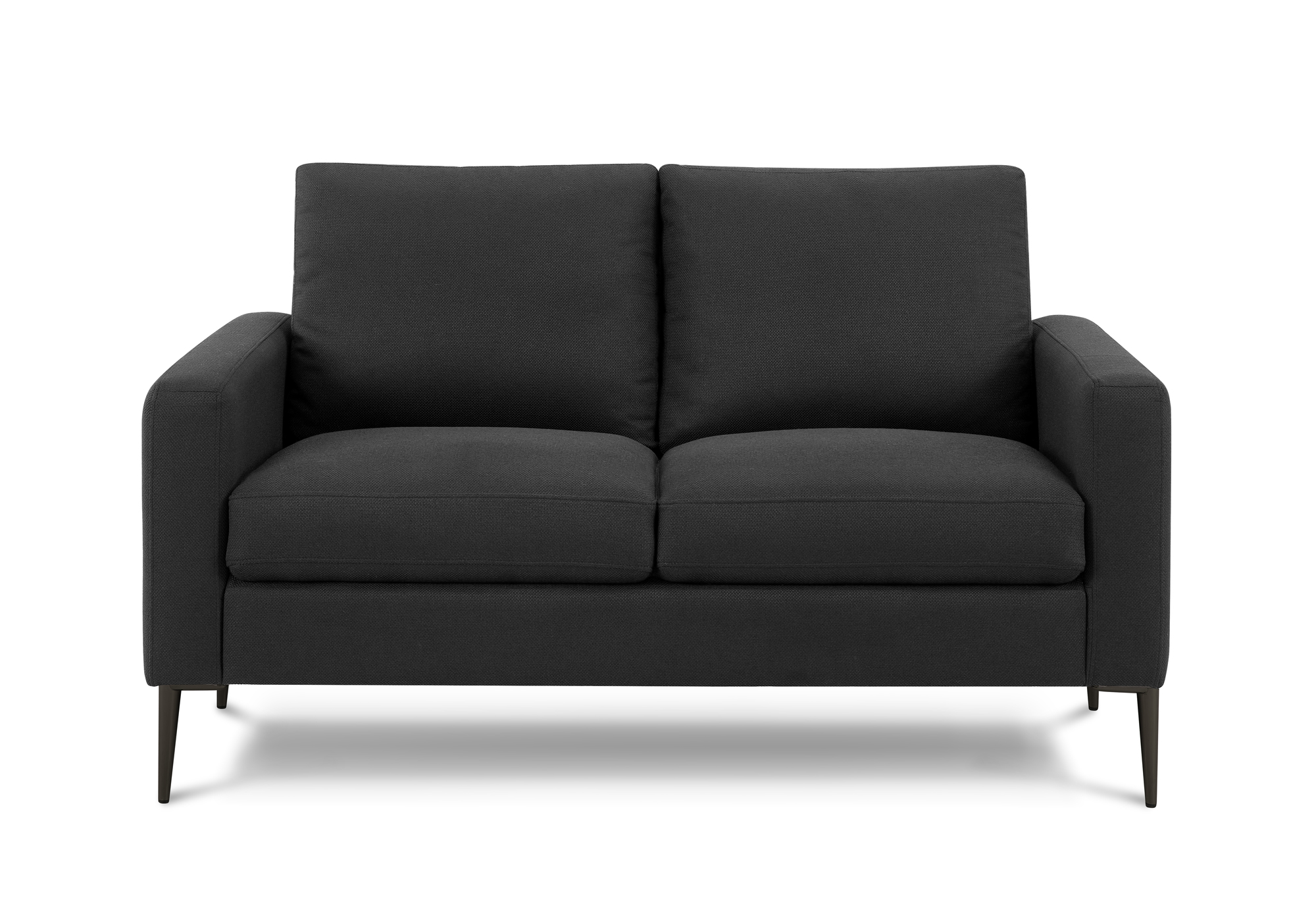 Designed for contemporary interiors, this 58″ long two-seater love seat offers a refined balance of modern style and everyday comfort. Upholstered in a chic black fabric finish, it brings a sleek, sophisticated presence to any modern living room. Cushioned seating with padded pocket coil construction provides a comfortable, well-balanced feel, while the square arm design adds clean, modern definition. A durable solid wood frame ensures lasting strength and stability, complemented by sleek black metal legs that add a subtle touch of elegance. Thoughtfully crafted for both style and function, this love seat serves as a striking focal point while remaining an inviting place to unwind. Backed by a 1 year limited warranty, it offers added peace of mind and dependable quality. A modern essential with timeless appeal, this love seat seamlessly combines comfort, durability, and contemporary design an effortless addition to your home.