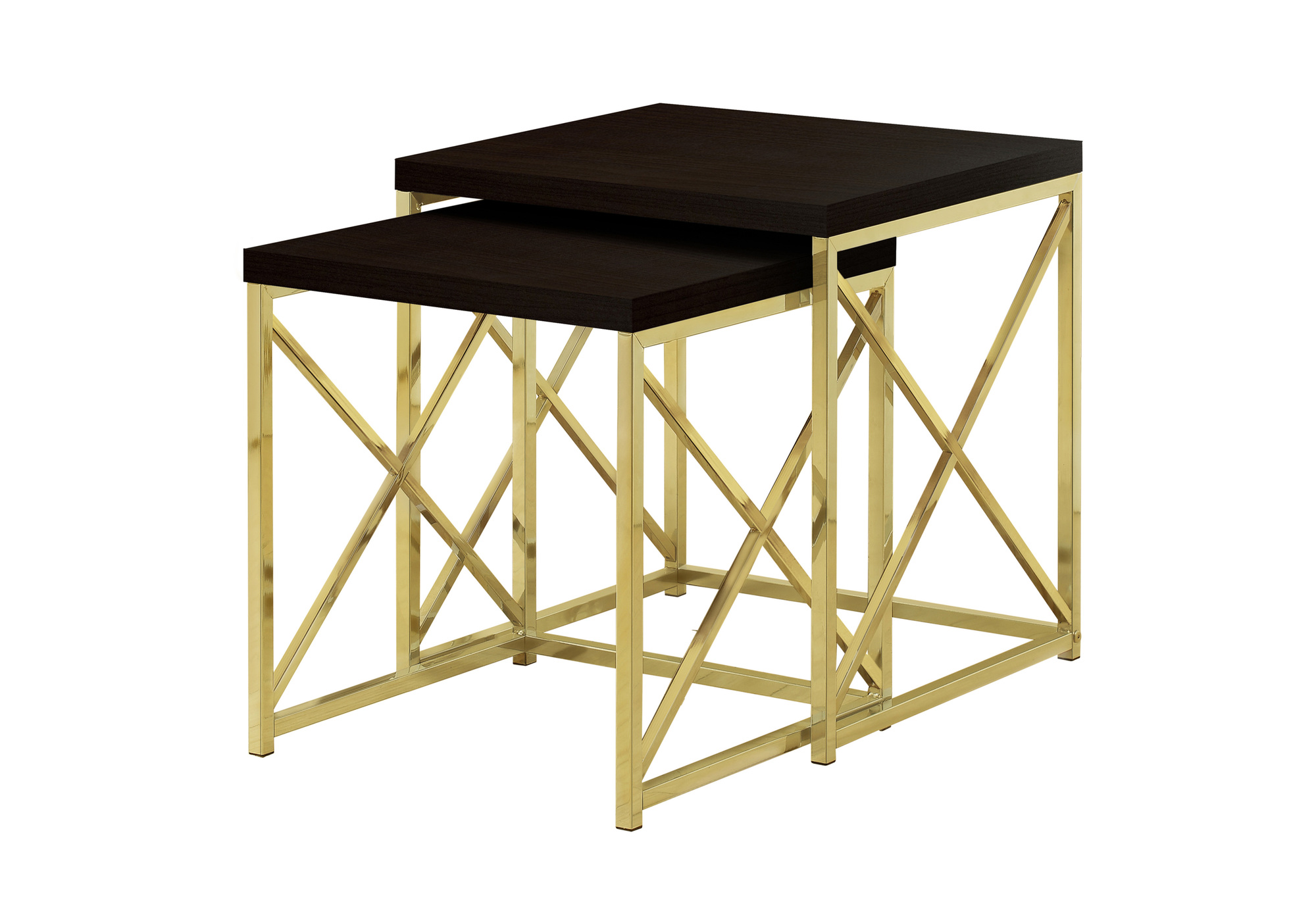 NESTING TABLE – 2PCS SET / ESPRESSO / GOLD METAL