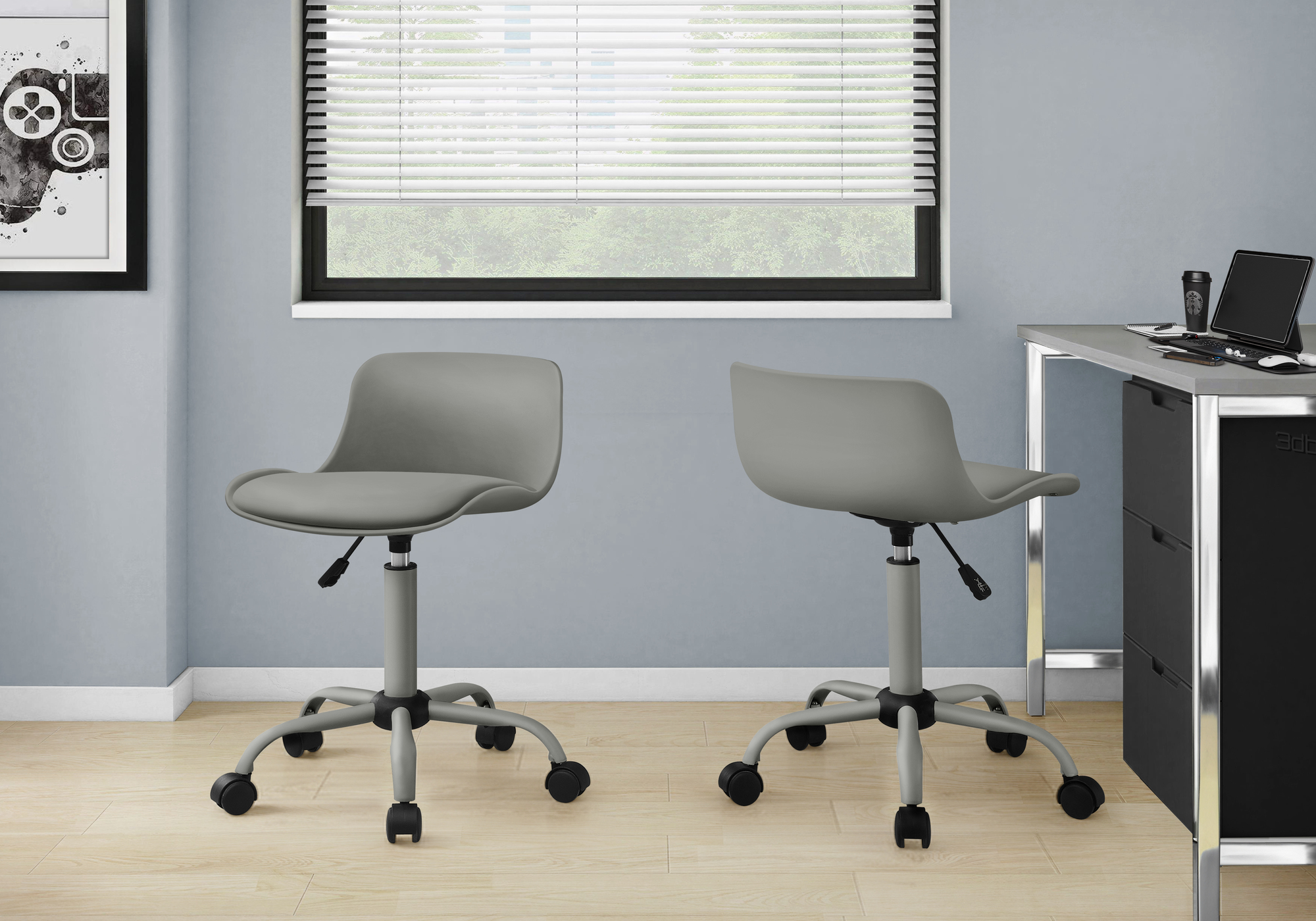 Low-back office chair for youth in grey with a grey metal base
