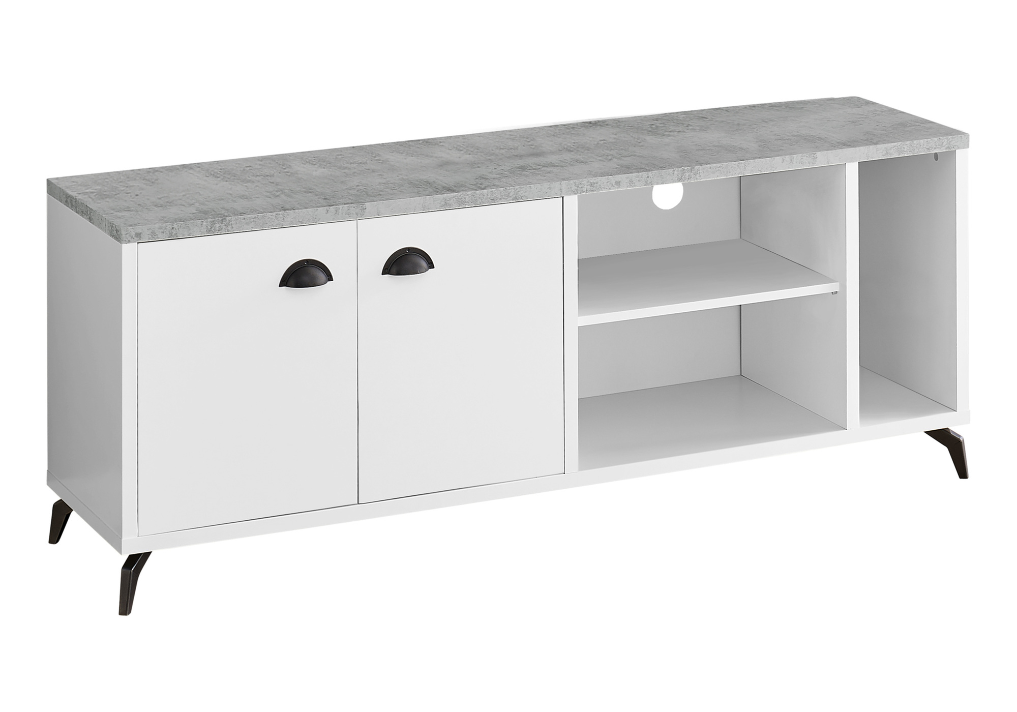 TV STAND – 60″L / WHITE / GREY CEMENT-LOOK TOP