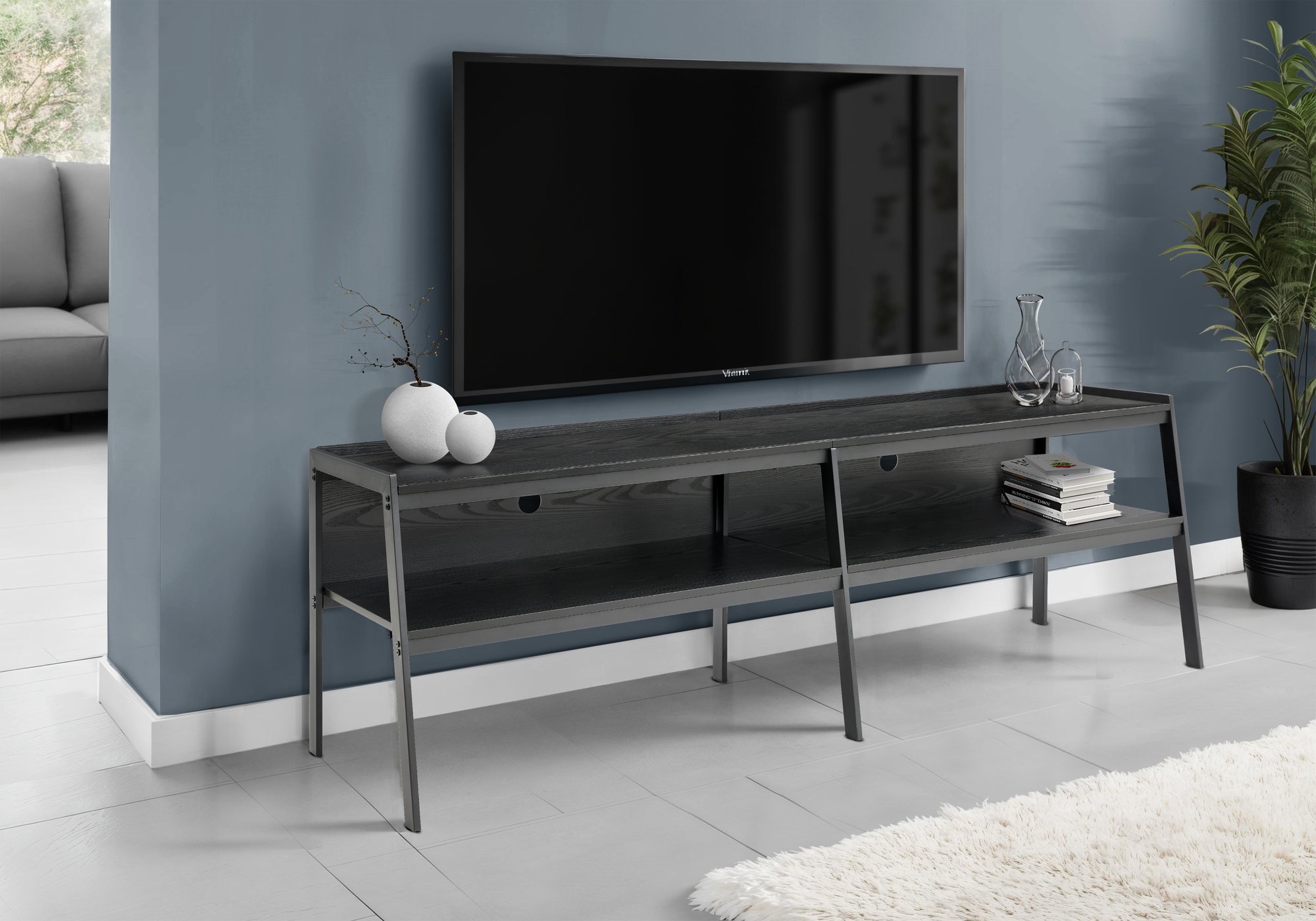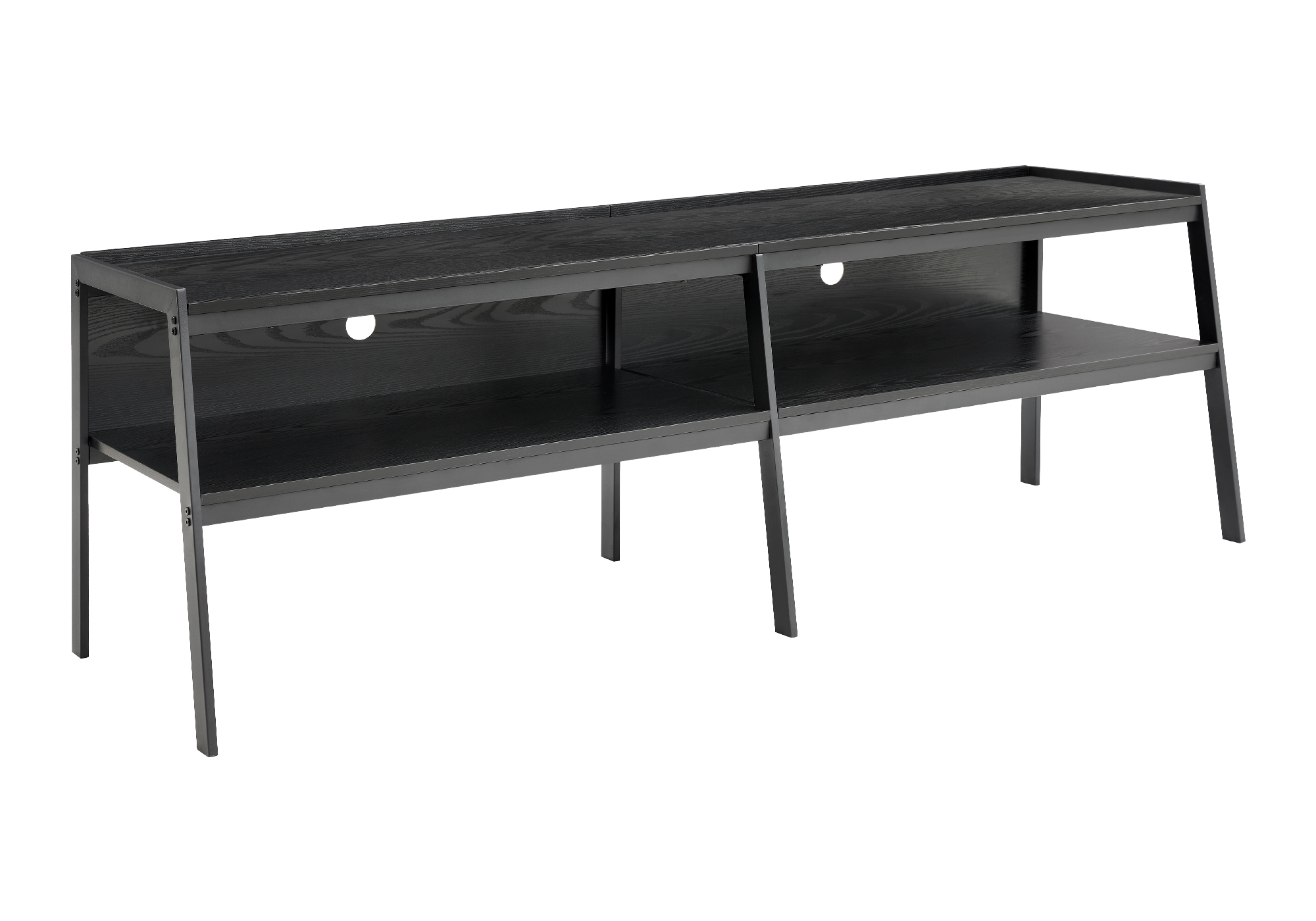 TV STAND – 72″L / BLACK WOOD GRAIN / BLACK METAL